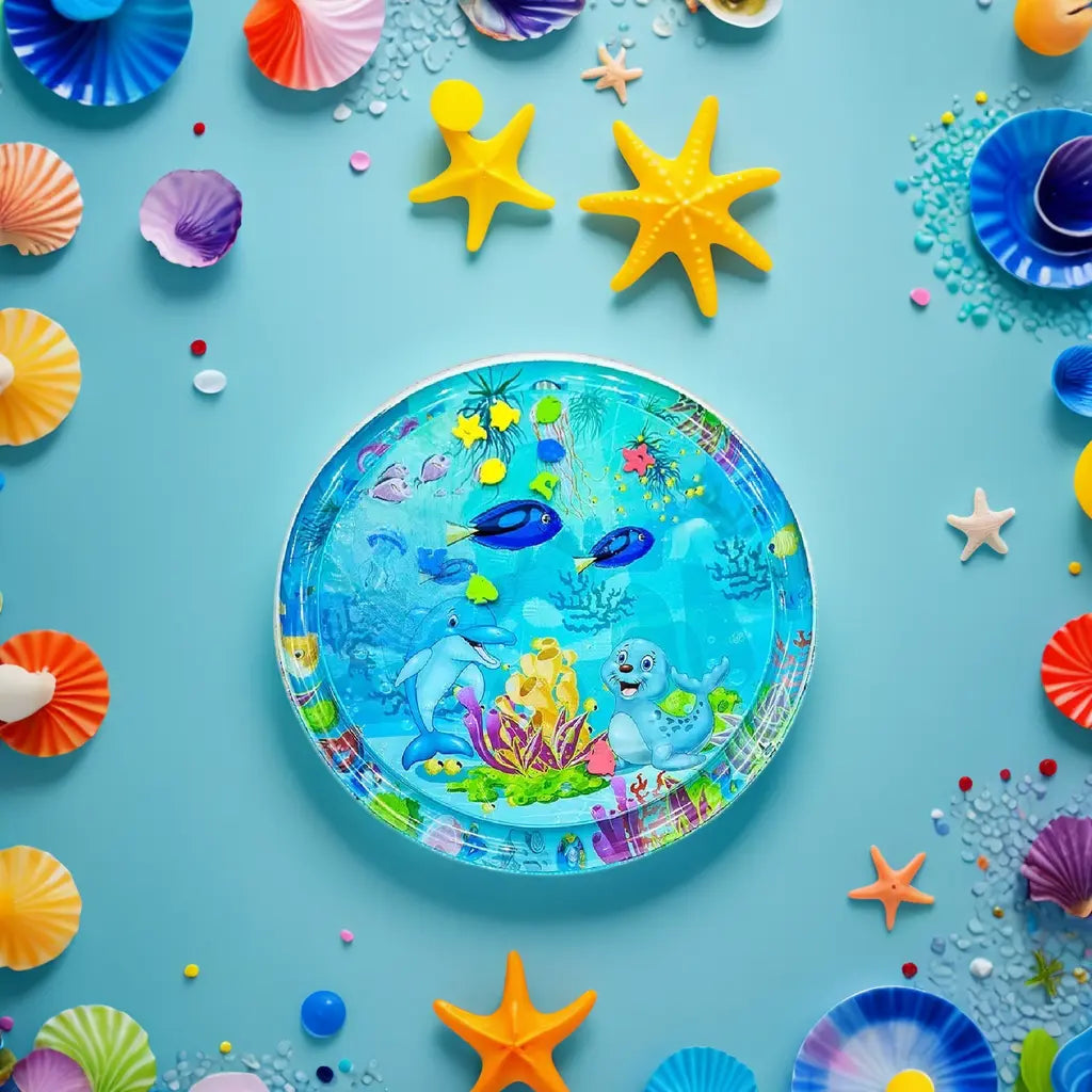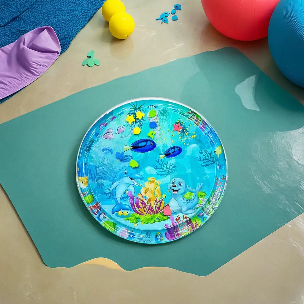 Grand tapis d'eau bébé – 100 cm, Motif Dauphin et Phoque, Gonflable en PVC
